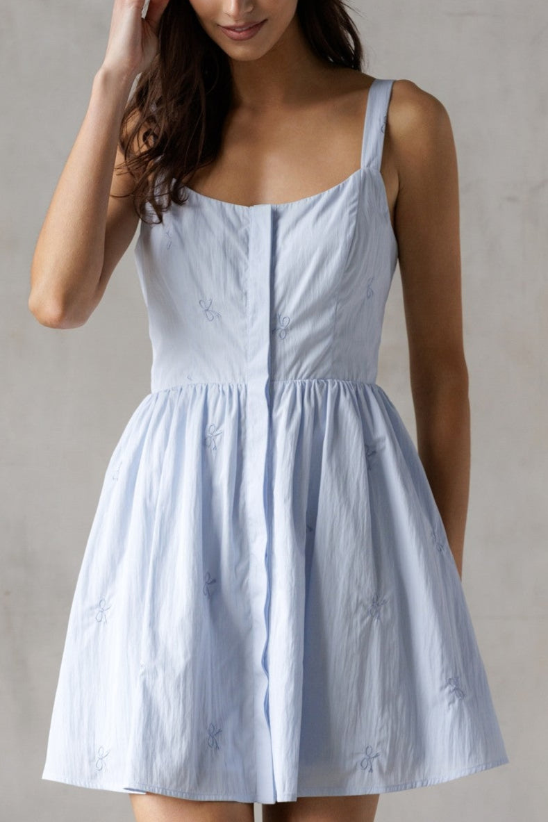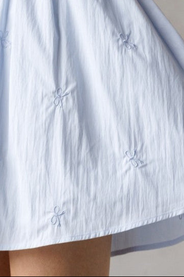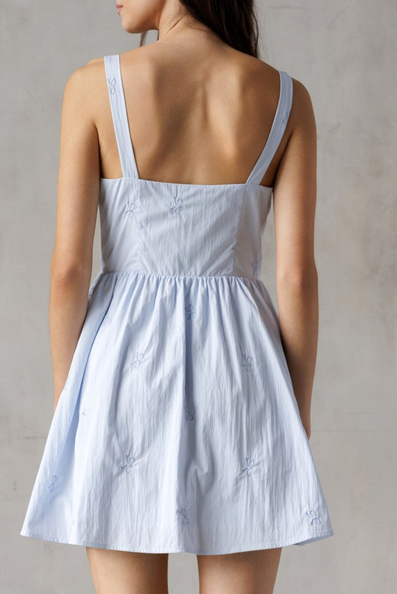 This Baby Blue Bows Dress is a lightweight and comfortable choice for any sunny day. Its soft fabric gently drapes while charming embroidered bow details add a playful touch. Perfect for twirling and making every moment a little more delightful.