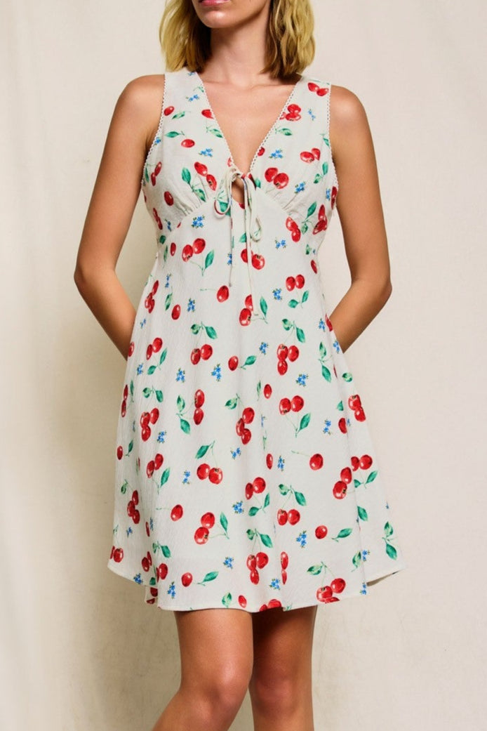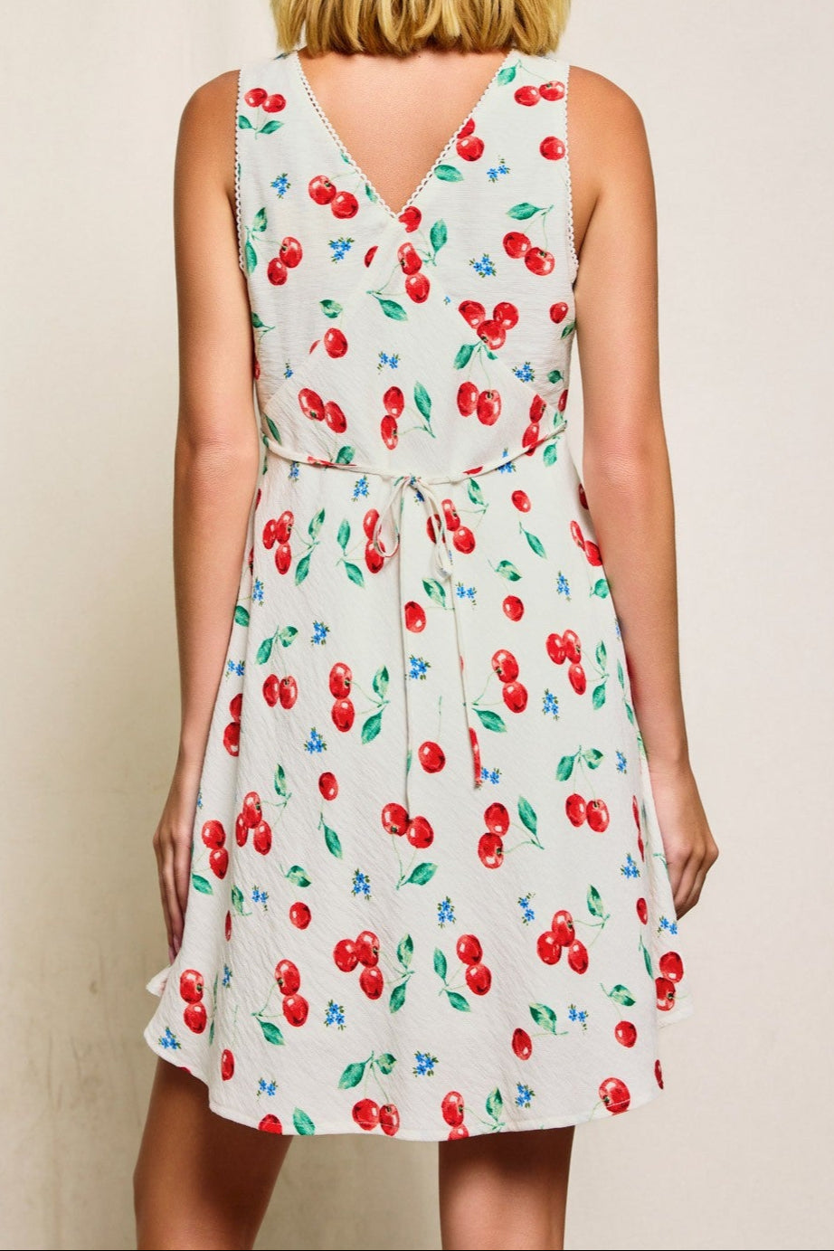 This flirty Cherry Mini Dress is the ultimate summer must-have! Its dainty design and vibrant color make it the perfect pop of style for any sunny day. Say goodbye to boring outfits and hello to playful fashion with this mini sundress.