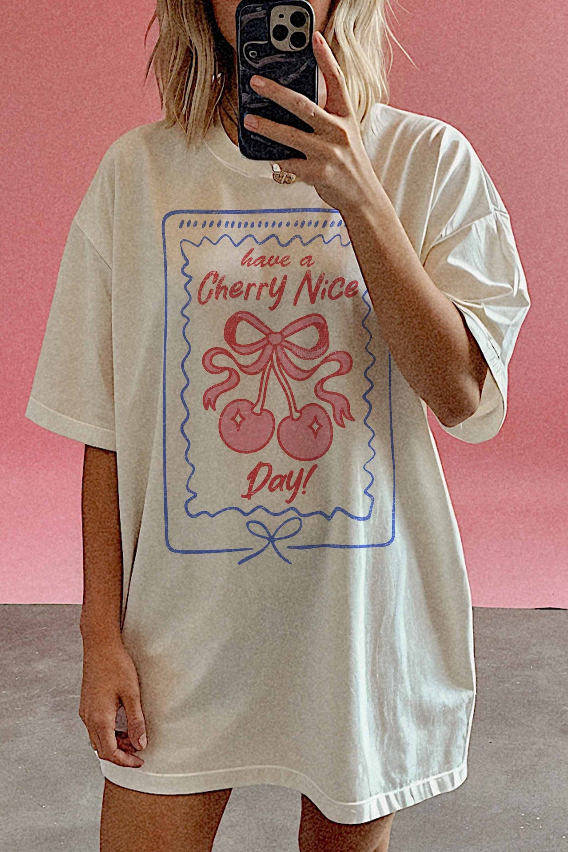 Brighten your day with the Have a Cherry Nice Day Tee! This relaxed-fit shirt combines comfort and fun, featuring a playful cherry design that’s sure to bring smiles wherever you go. Perfect for casual outings or cozy days at home, it’s your new go-to for effortless style and good vibes.