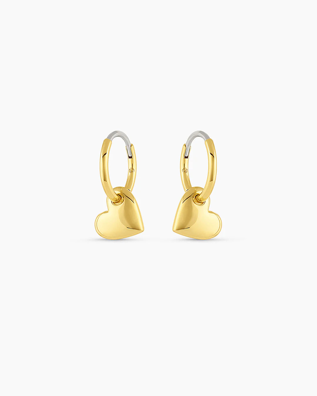 Lou Heart Huggies are pure love in earring form. These adorable heart-shaped huggie earrings feature lustrous 18k gold plating that catches the light beautifully. Wear them close to your ear for a sweet, romantic touch that works for everyday wear or special occasions. Lightweight and comfortable, they're the perfect way to show your softer side with style.
