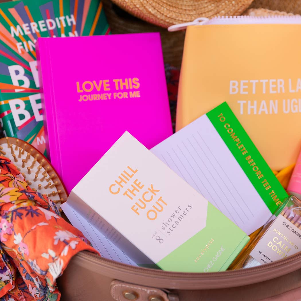 The Love This Journey For Me Journal is made for celebrating milestones, chasing goals, or just laughing through the chaos along the way. With its bold bright fuchsia hardcover and luxe gold foil phrase, this lined journal is equal parts fun and functional — perfect for jotting notes, affirmations, or daily reflections.