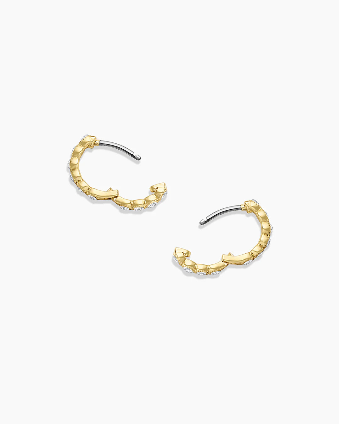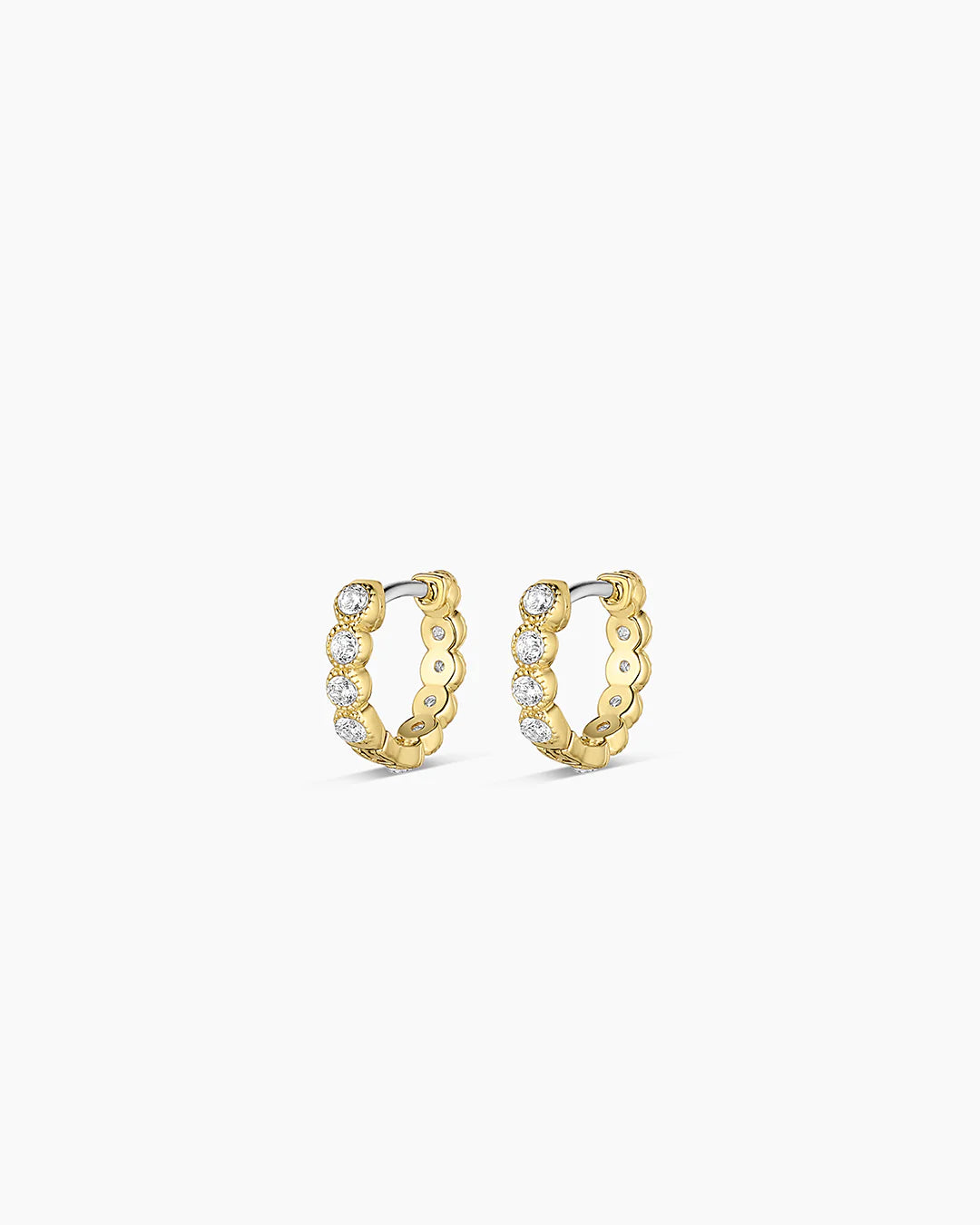 Glow up with the Madison Shimmer Huggies, where radiant 18k gold plating meets mesmerizing sparkle. These lightweight beauties hug your ears with just the right amount of glimmer to catch every eye in the room. Stack them, layer them, or let them shine solo—either way, you're radiating pure magic.