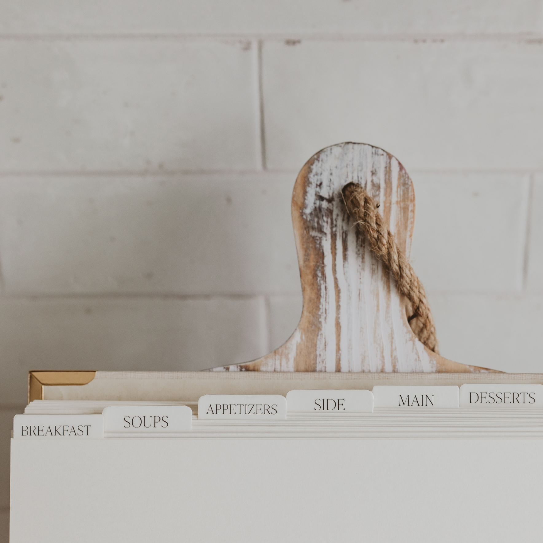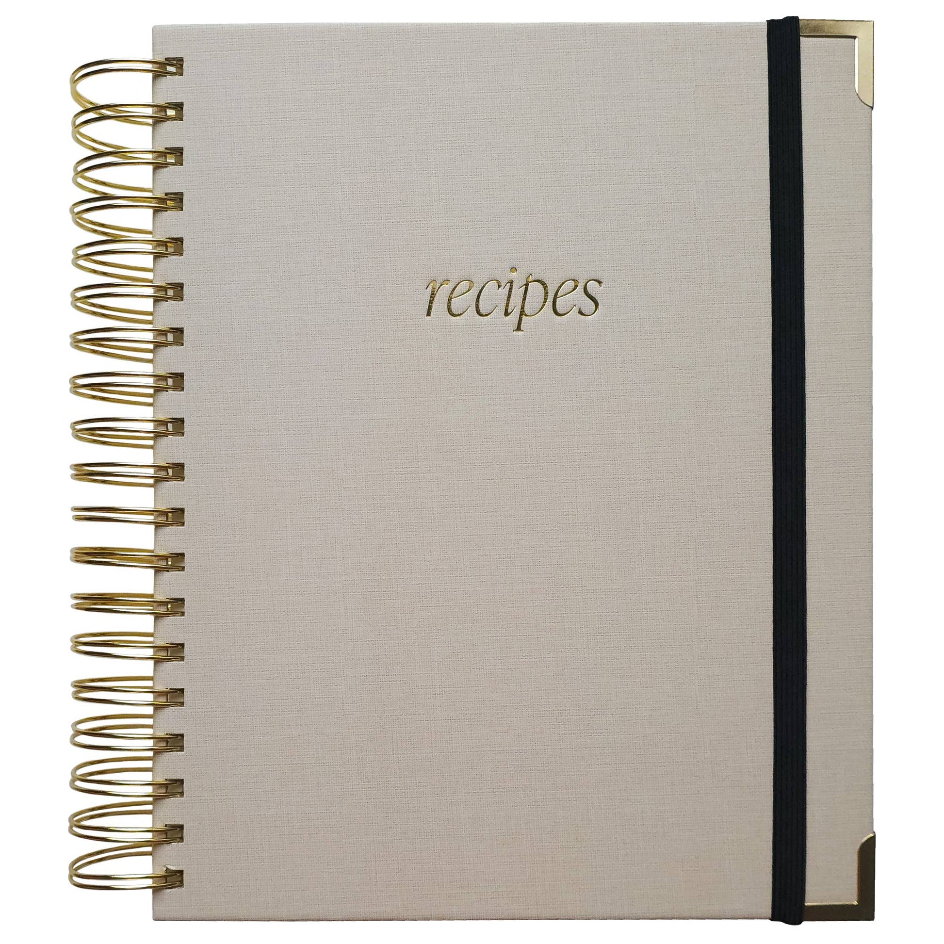 Capture your culinary journey in your new Recipe Book, designed for you to preserve not only your cherished family recipes and secret ingredients but also those delightful recipes you've discovered along the way. Whether you're a seasoned chef or a home cook, this book will help you organize your favorite recipes all in one place. DETAILS: • 8 Tabbed Sections: Breakfast, Soups, Appetizers, Side, Main, Desserts, Bread, Beverages • Comes In A Box • Size: 8.13" x 5.63" • Design: Recipes • Neutral Laminate Hardcover Book • Spiral Bound with Gold Metal Corner Details • 100gsm Uncoated Lined Paper • Elastic Book Band Closure • 40 Prompt Recipe Pages Per Section