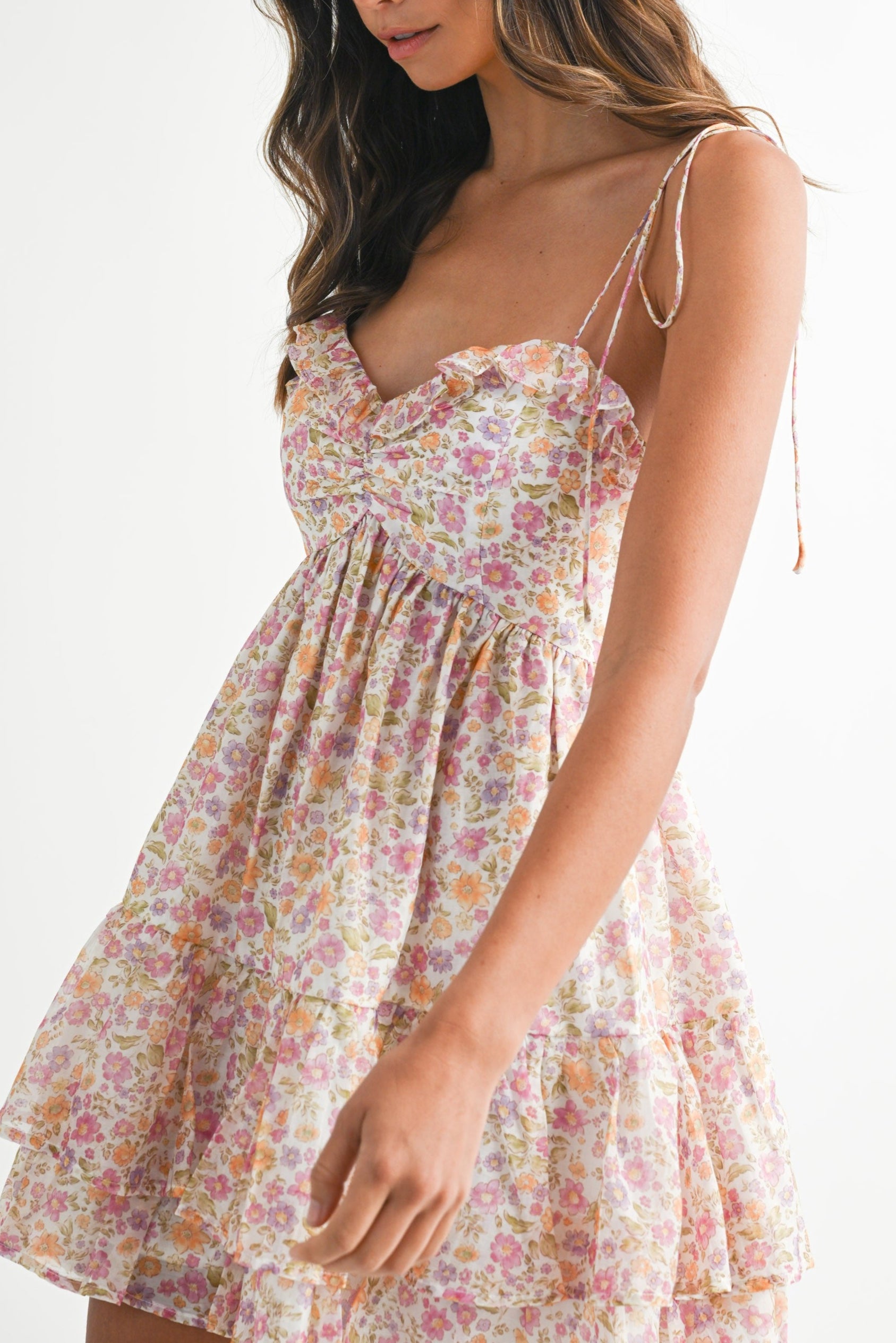 This Wildflower Tiered Mini Dress features a playful floral design and breezy tiered layers that move with you. Adjustable tie straps add a flirty touch and a customizable fit, making it perfect for sunny days and spontaneous adventures. Light, fun, and effortlessly charming, it’s your go-to dress for a carefree, joyful look.